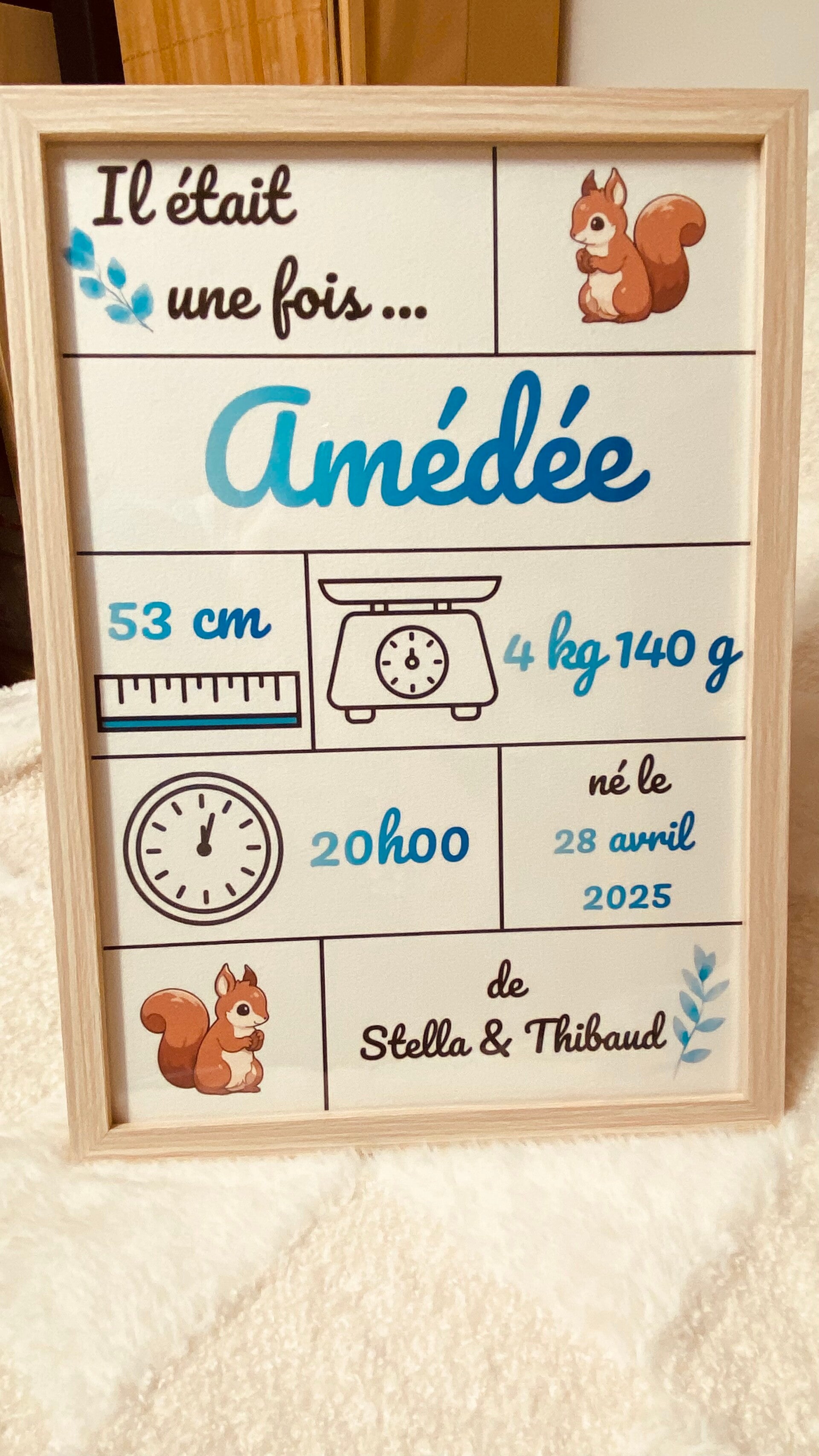 Affiche naissance personnalisée encadrée